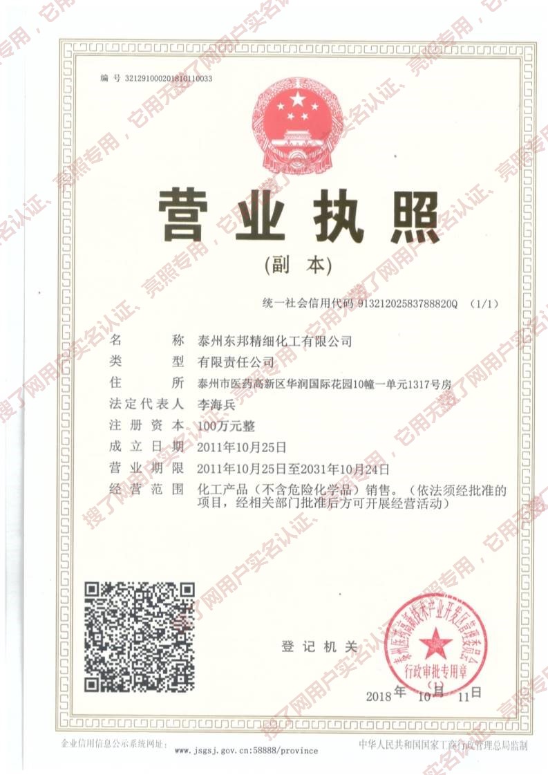您好,欢迎光临泰州东邦精细化工有限公司,请发送您要咨询的内容。